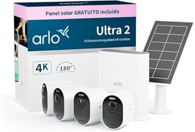 Arlo Ultra 2 Camara de Vigilancia WiFi Exterior 4K + Panel Solar Camara de Vigilancia WiFi Interior Sensor de Movimiento Visión Nocturna Color Prueba Arlo Secure Incluida 4 Cámaras Blancas