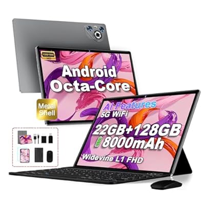 Dghrti - 2025 Newest Tablet 10 pollici Android 14 22GB RAM 128GB ROM/TF 1TB Octa-Core 8000mAh Corpo in Metallo Face ID Doppio WiFi 8MP+5MP Widevine L1 Protezione Occhi Tastiera Mouse Gary