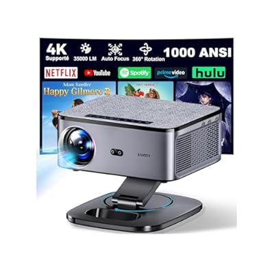 【1000 Ansi & Auto Focus】 XIWBSY Proyector 4K Soporte con WiFi 6 y Bluetooth 5.3 Gira 360 ° 35000 Lúmenes Proyector Android Vídeo de Cine En Casa Projector Portátil 4K