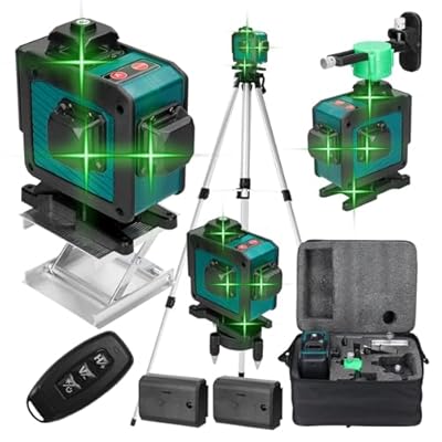 🇪🇸 Geevorks Nivel Láser 360 16Líneas Láseres de Verde Cruzada Autonivelante 3grados 4D con Trípode+Control Remoto+Control móvil 2 1200mAh Baterías Base de Rotación Herramientas de Mejoras para Hogar